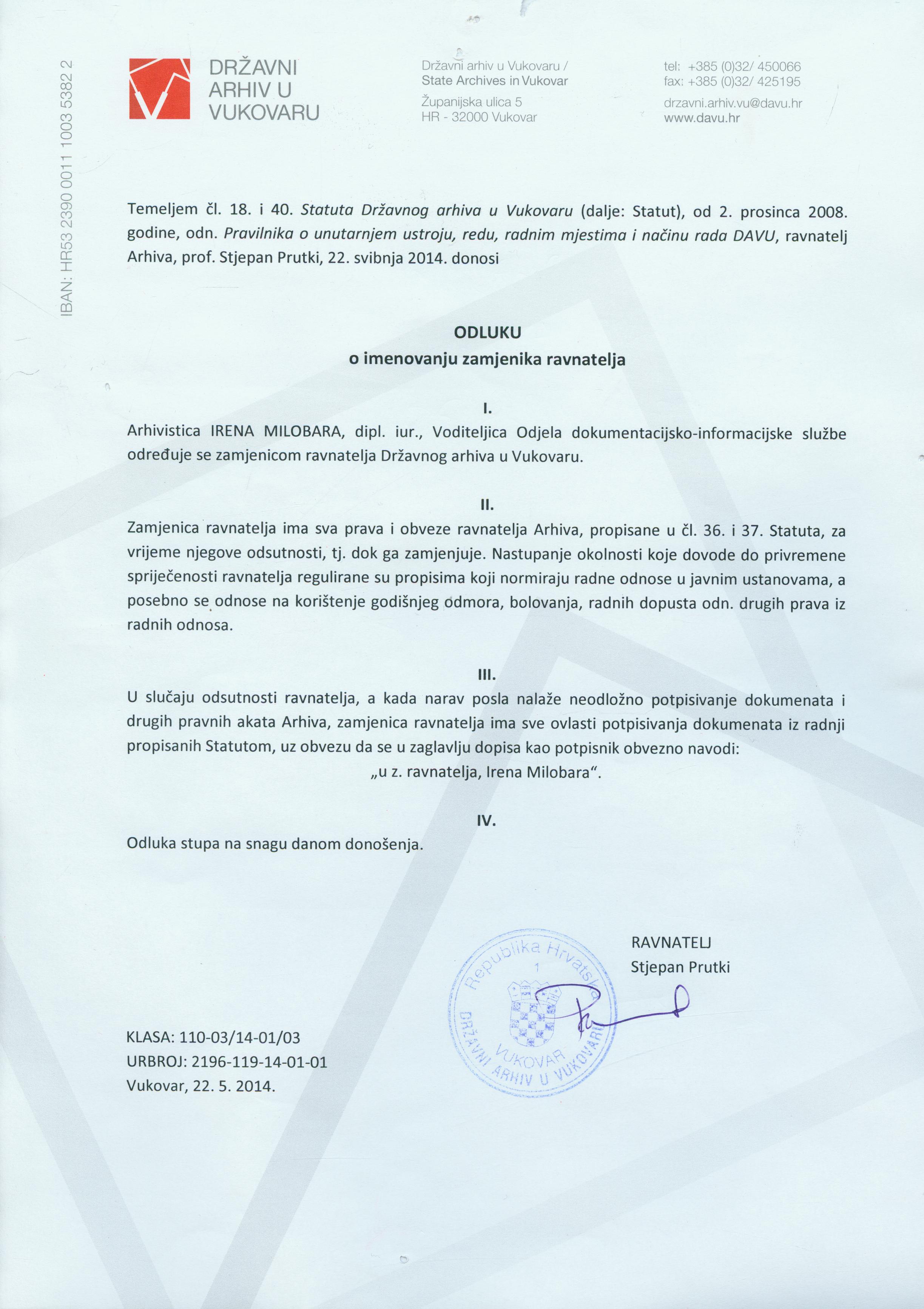 NATJEČAJ za imenovanje ravnatelja/ravnateljice Državnog arhiva u Vukovaru